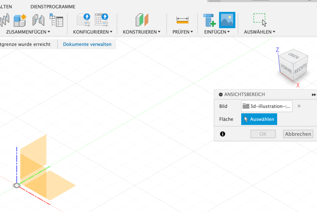 Dann wählst Du im Menü „einfügen“ den Ansichtsbereich aus.