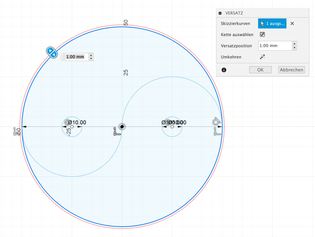 Erstelle einen Versatz des äusseren Kreises: