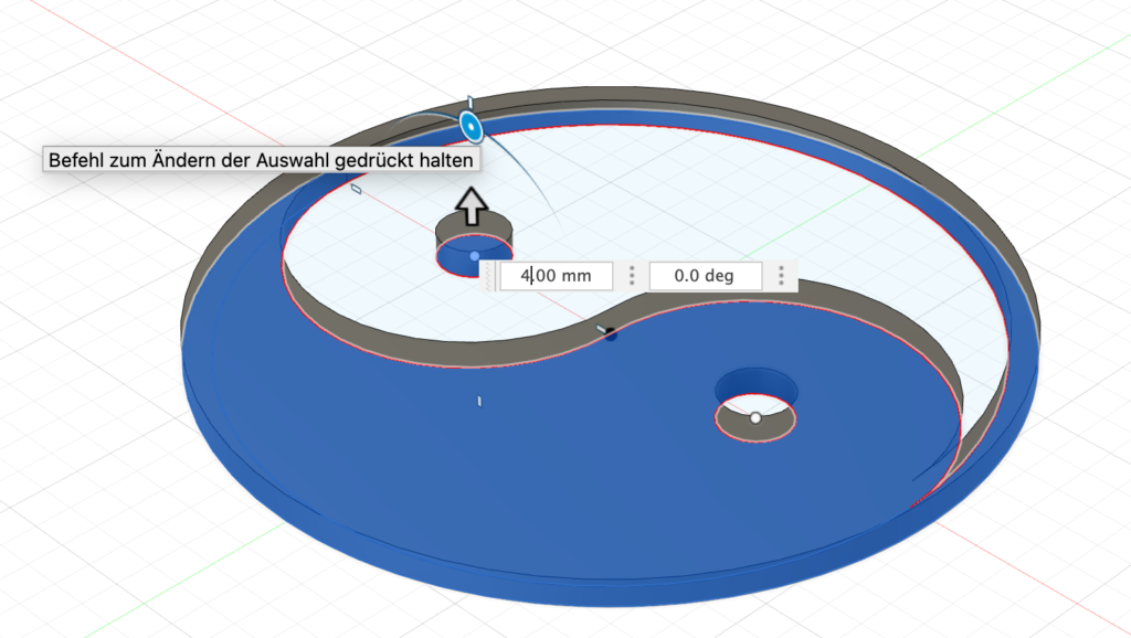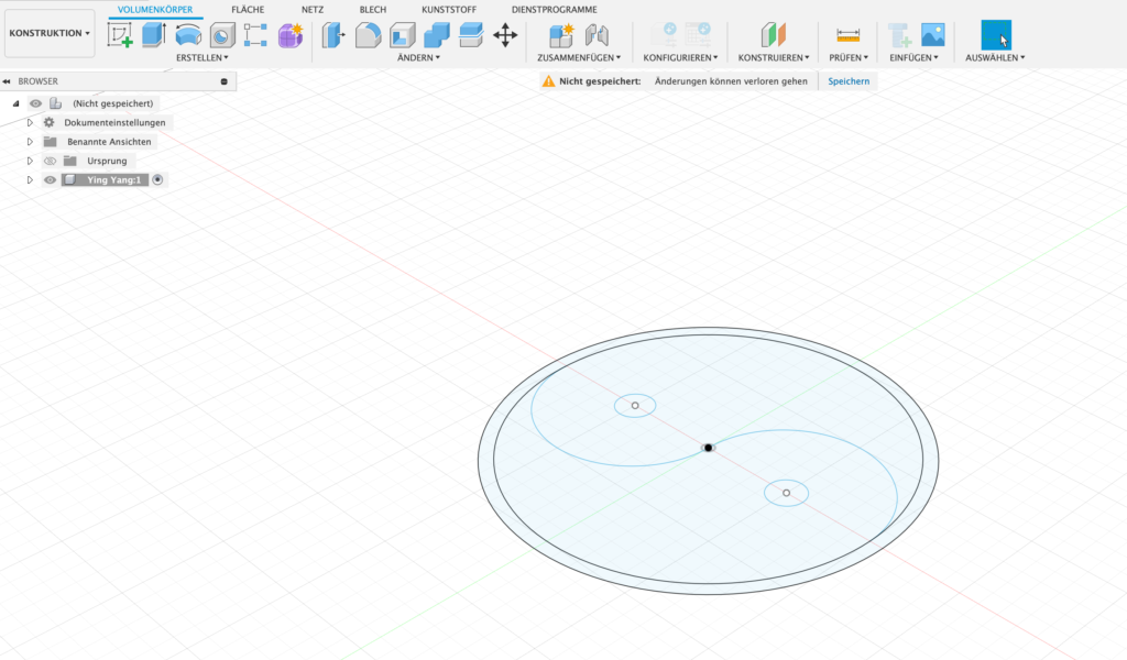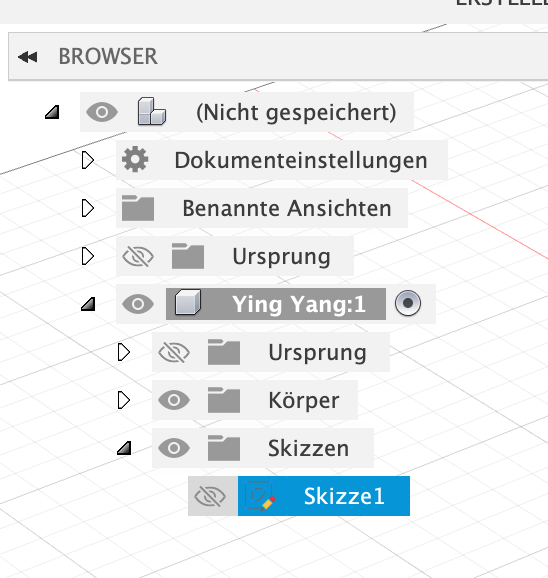 Wähle „Neue Skizze aus und wähle die Ebene aus, auf der Du die Skizze zeichnen möchtest (in unserem Fall soll das Ying Yang auf dem Boden liegen: