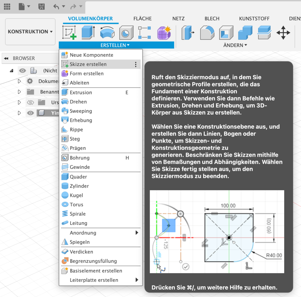 -Erstellen einer Skizze in der Grundebene)