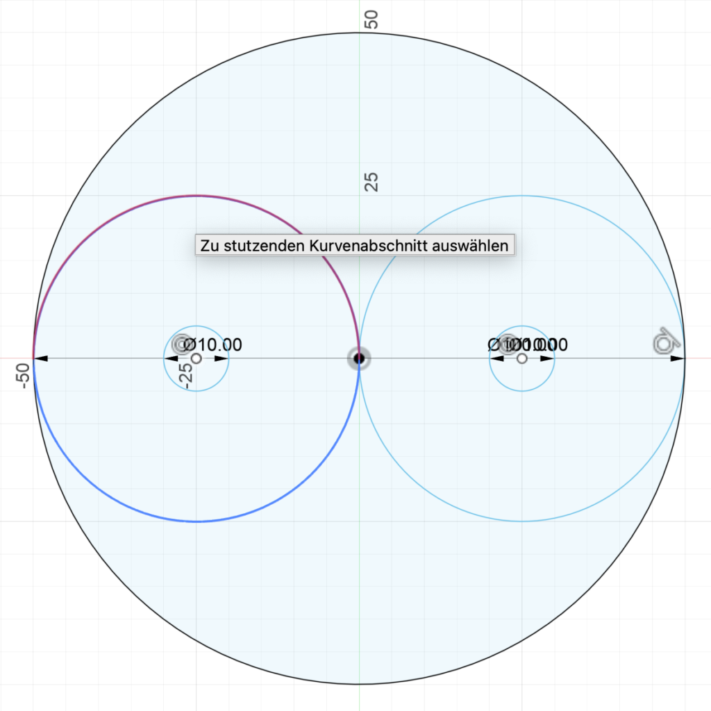 Wähle das „Stutzen“ Werkzeug aus, das wie eine kleine Schere aussieht und lösche die unnötigen Halbkreise weg.