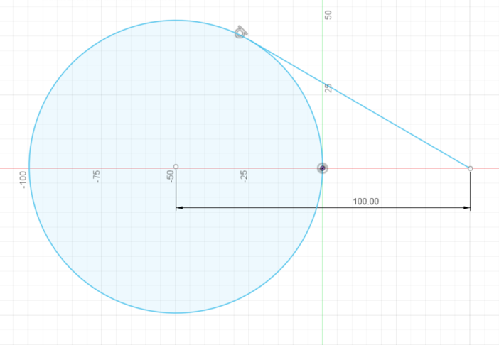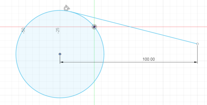 - Wähle das Ende der Linie und anschliessend den Kreismittelpunkt aus.