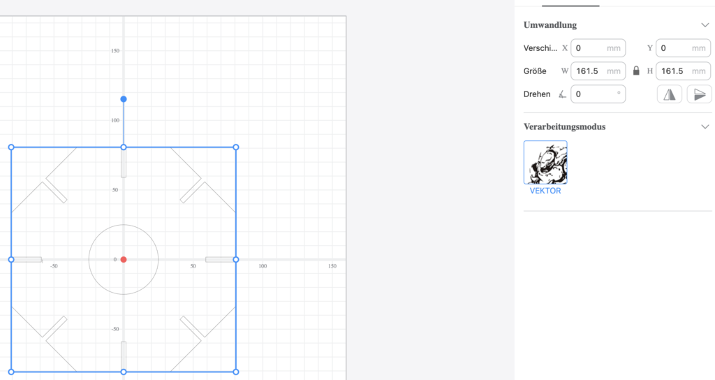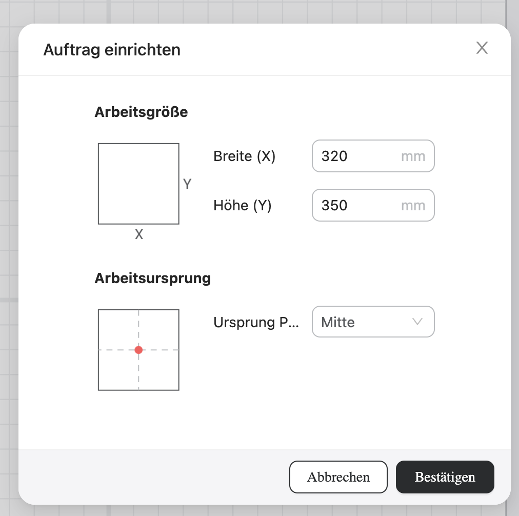Anschliessend musst Du definieren, wie gross die Arbeitsplattform sein soll (die Grundangabe ist das Maximum). Ich würde nur eine so grosse Plattform wählen, wie Du auch brauchst. Bei einfacheren Projekten würde ich den Ursprung auch in der Mitte lassen.