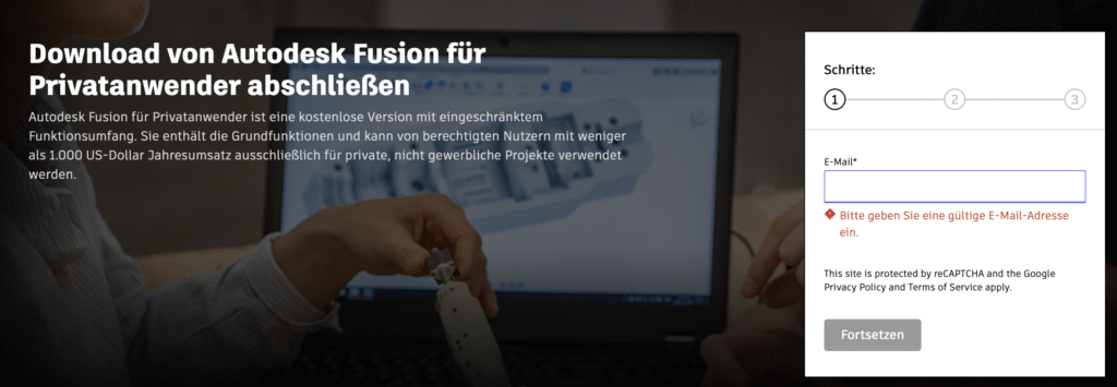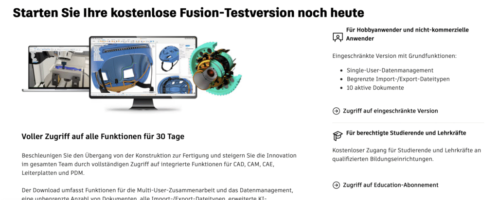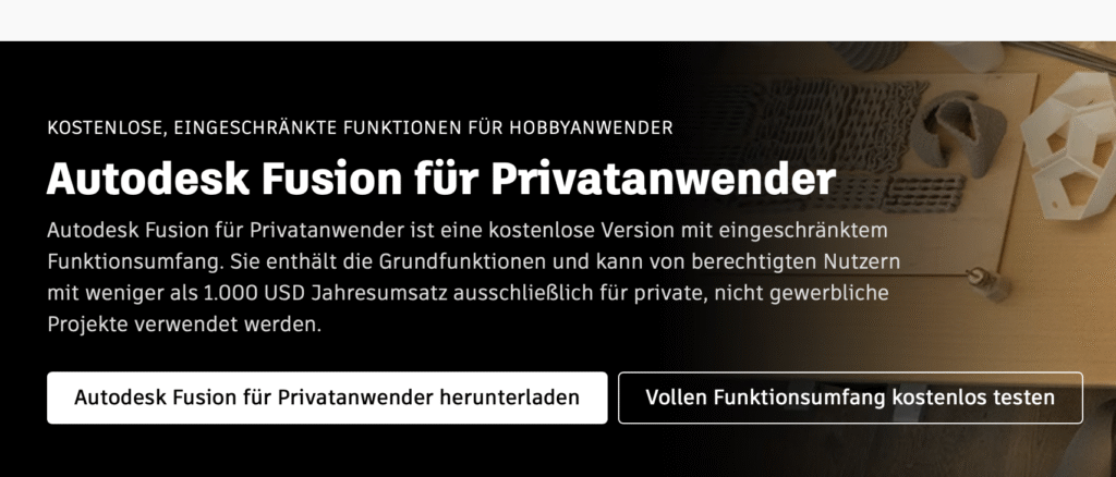 Wähle „Autodesk Fusion für Privatanwender herunterladen“ aus.
